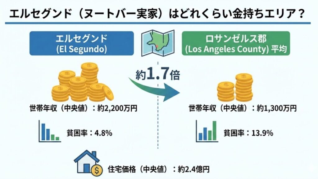 | 項目 | エルセグンド(実家) | ロサンゼルス郡(平均) | 差 |