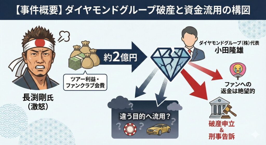 2025年12月、衝撃のニュースが飛び込んできました。あの長渕剛さんのコンサートツアーを取り仕切っていた「ダイヤモンドグループ」が破産。