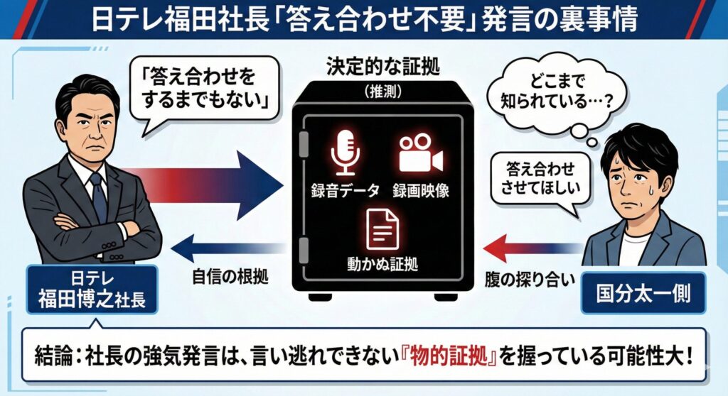 「答え合わせをするまでもない」という言葉は、「これ以上騒ぐなら、この証拠を表に出すことになりますよ?」という、暗黙のメッセージなのかもしれません。